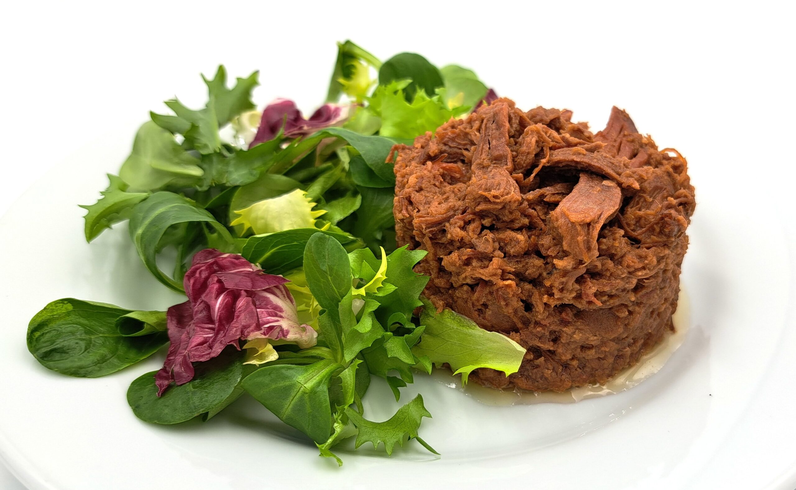 Préparé à partir de cuisses de canard confites, soigneusement effilochées, cet effiloché est un véritable délice. La cuisson sous vide permet d’obtenir une viande tendre et savoureuse, imprégnée de ses jus riches et parfumés.